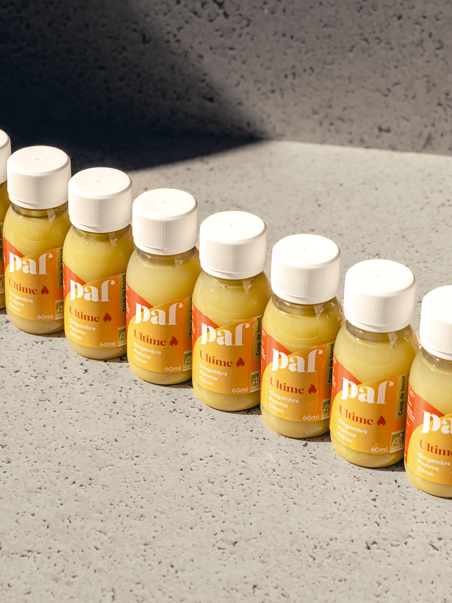 Depuis 8 ans, notre certitude est restée la même : aucun jus ou shot ne sera efficace si les légumes, fruits et superaliments qui le composent ne sont pas exceptionnels à tous points de vue. Donc nous ne faisons aucun compromis sur la qualité de nos ingrédients ! Nous privilégions systématiquement une alimentation de qualité qui préserve la planète, issue d’un mode d’agriculture durable qui respecte la biodiversité, nous préférons toujours un emballage qui ne requiert pas de ressources vierges, et un mode de production qui respecte l’intégrité nutritionnelle des ingrédients.